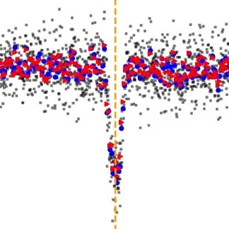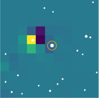 Revealing origin of the signal. The target star is circles in orange. The signal is coming from the yellow pixel.